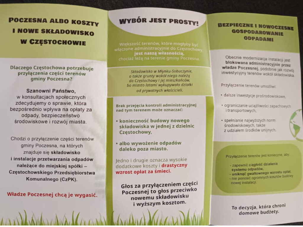 Prócz kontrowersyjnej ulotki, także sam prezydent Krzysztof Matyjaszczyk na swoim profilu facebookowym zachęca mieszkańców Częstochowy do wzięcia udziału w konsultacjach i powiedzenia „TAK” dla aneksji ziem gminy Poczesna.
